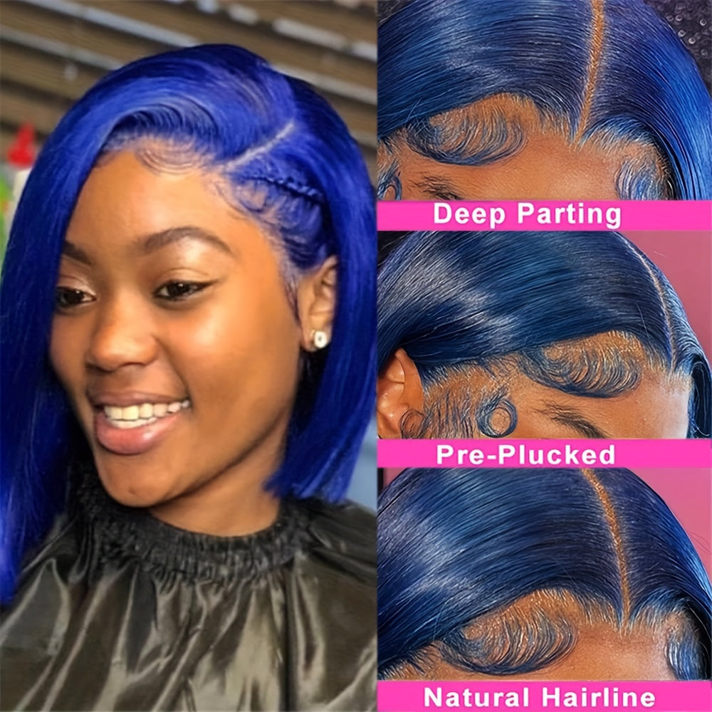 Hair Sophisticated Blue Ombré Bob Wig – 13x4 HD Lace Front Human Hair Wig, Dark to Light Blue Gradient, 180% Density, Straight Cut, Pre-Plucked Hairline, 10-16 Inch