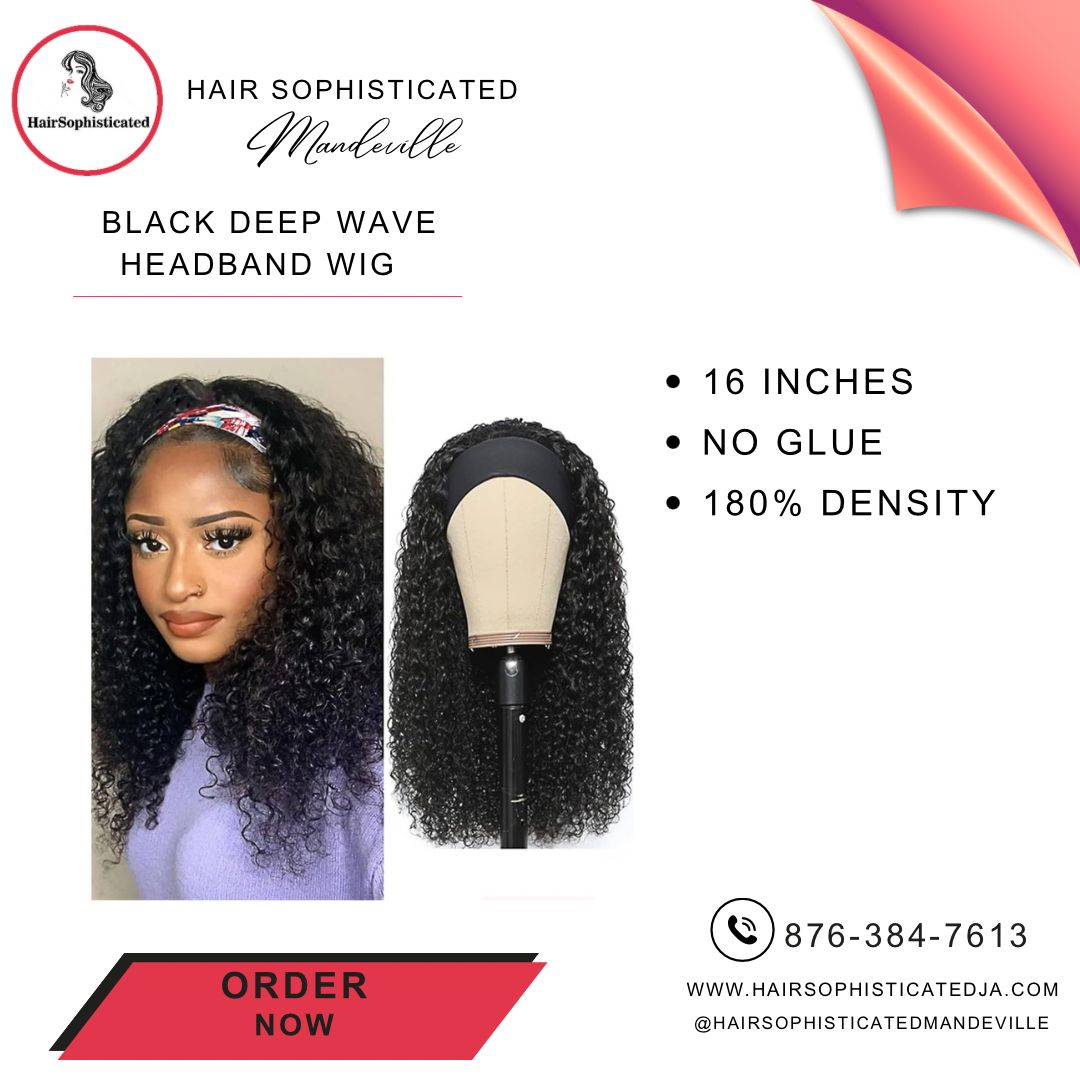 Black deep wave headband wig
