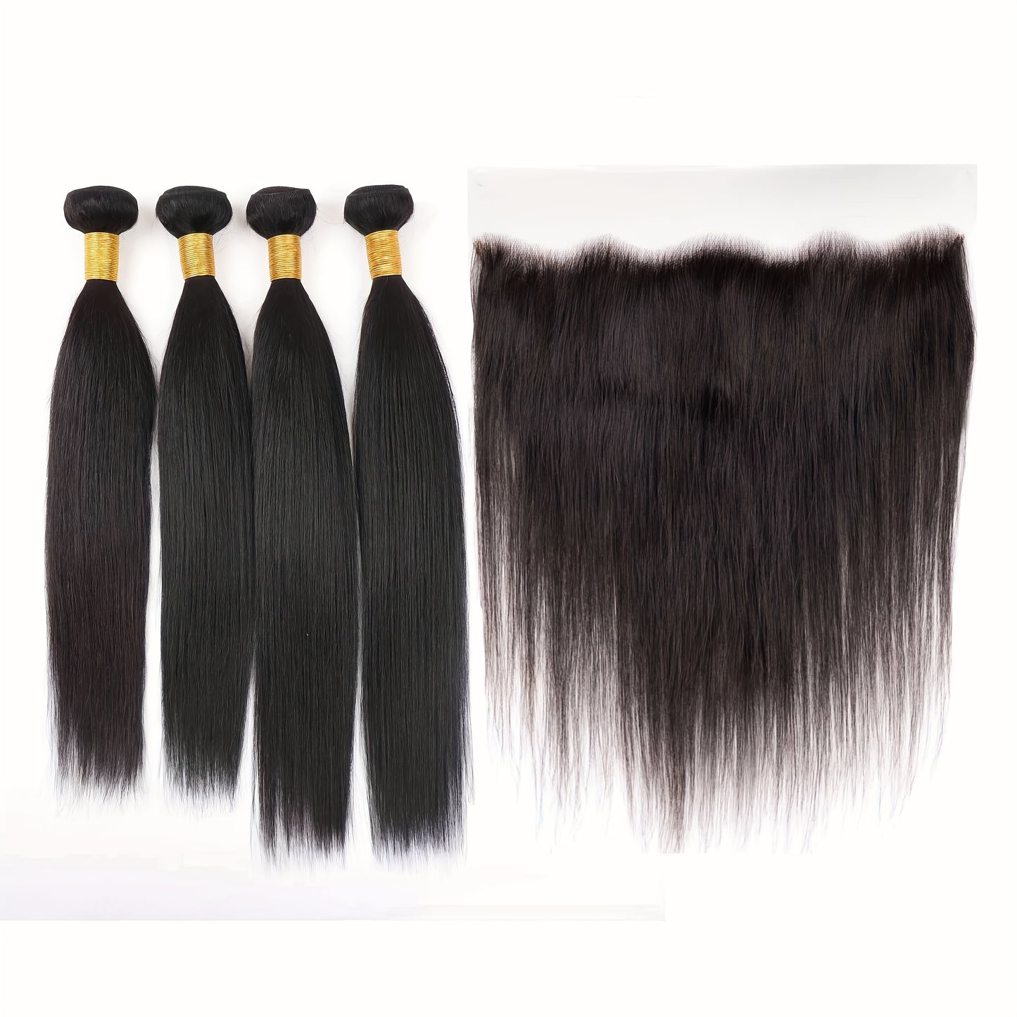 Step into smooth perfection with the Sleek Empress Straight Bundle Set from Hair Sophisticated™. This premium set includes 4 bundles of silky straight Remy Brazilian hair paired with a 13x4 HD lace frontal closure—crafted for a seamless, natural hairline and full-coverage glam. Perfect for sleek ponytails, bone-straight middle parts, or styling versatility with a natural finish.