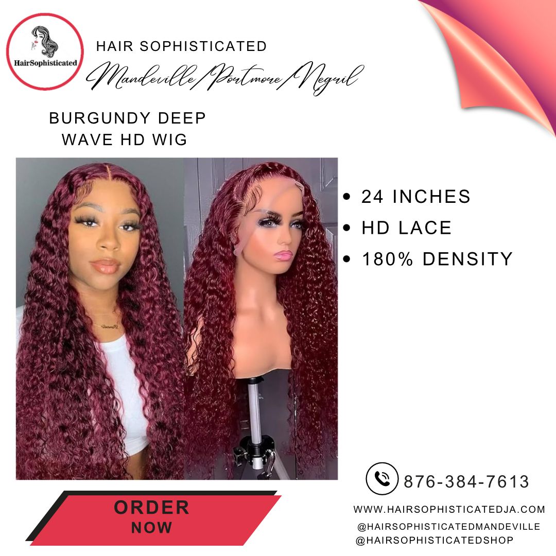Burgundy deep wave HD wig
